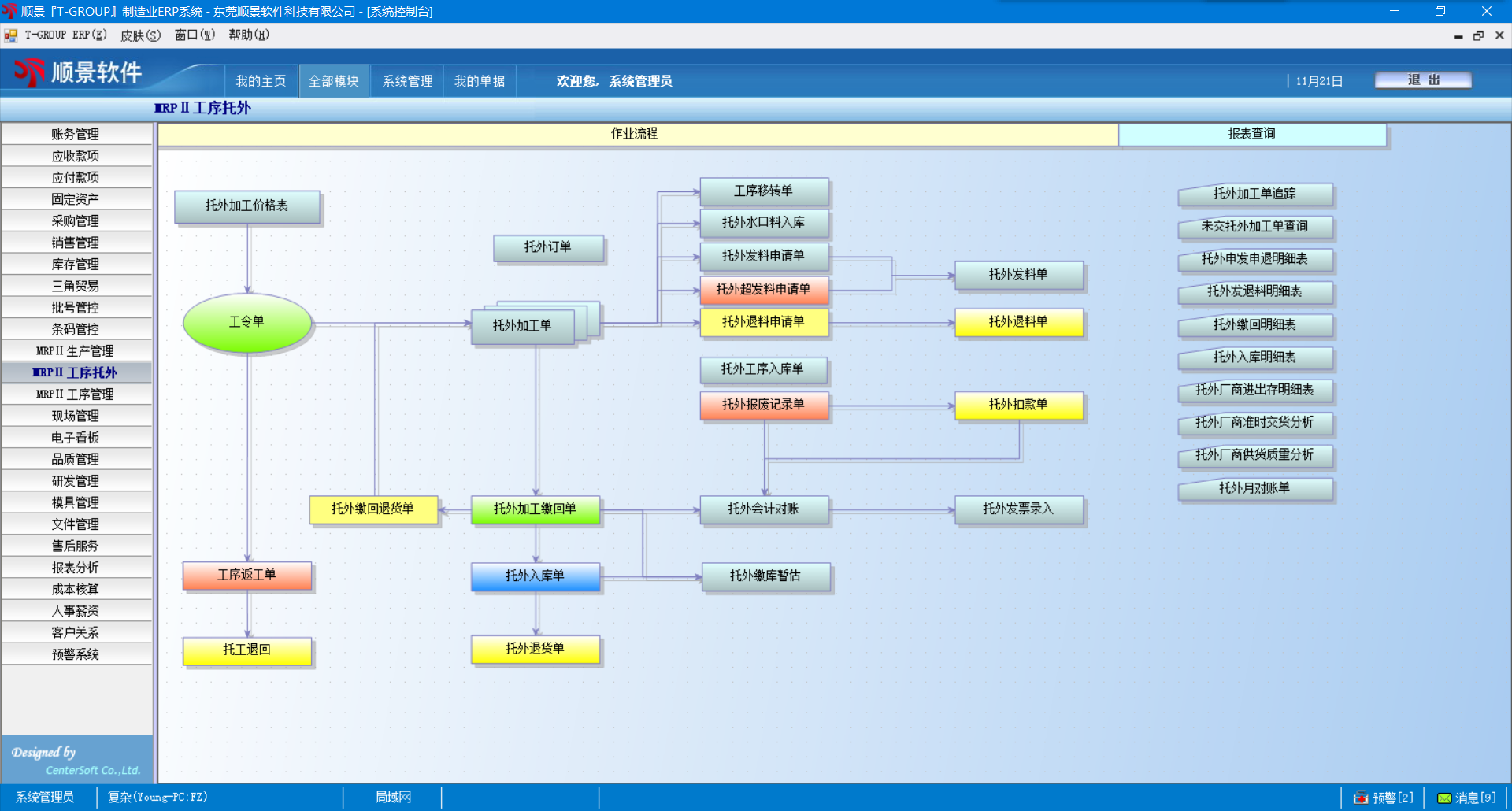 2.    外发材料管理,对于委外加工材料的发出、收回、结存有详细报表反映;